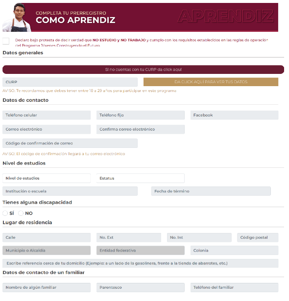 XXVIII. Joven registrado(a). Joven que declara ante el Programa, bajo protesta de decir verdad, no encontrarse estudiando y/o trabajando, y que completó el formulario de registro.