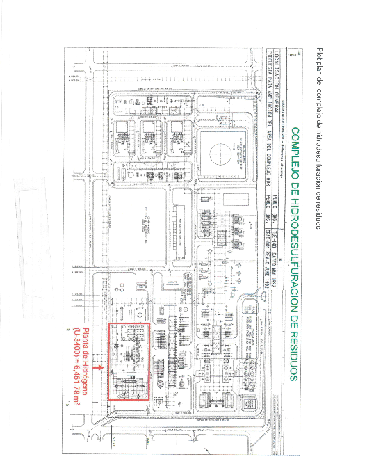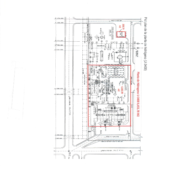 Que Pemex Transformación Industrial elaboró el dictamen técnico respecto de la Planta de Hidrógeno U-3400 que se encuentra ubicada en una fracción de terreno de 6,451.78 m2 dentro de una serie de plantas denominado "Complejo de hidrodesulfuración de residuos" al interior de la Refinería Tula, en Tula de Allende Hidalgo, conforme a los siguientes planos: