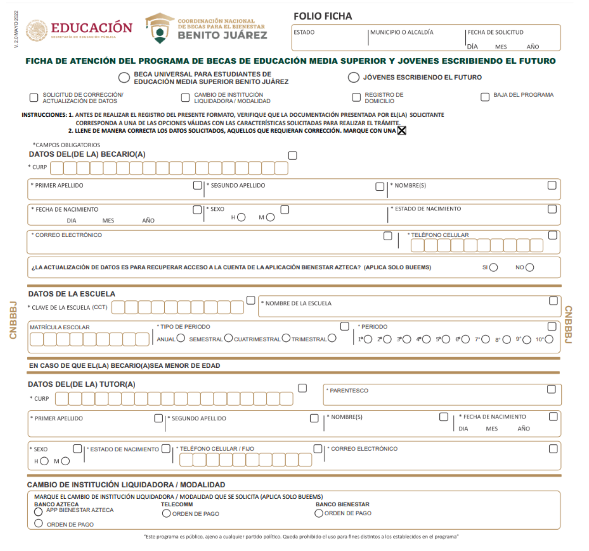 Anexo 6.- Solicitud de Actualización de Información del Programa Jóvenes Escribiendo el Futuro