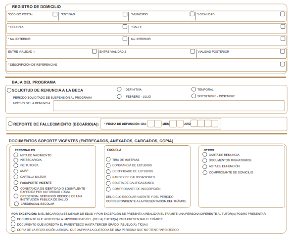 | __ al ___ de ___ | Periodo contemplado para el proceso de continuidad y nuevo ingreso en el "sistema que destine la Coordinación para ello" o en su caso el proceso realizado por operativo en campo. |