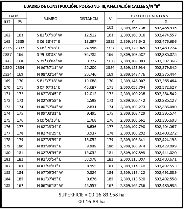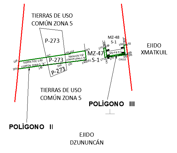 18. Que el comisionado técnico del RAN y el comisionado agrario de la Sedatu rindieron el "informe de comisión de Trabajos Técnicos e Informativos de Expropiación", de 13 de octubre de 2023, en el que señalan que la superficie real a expropiar al ejido "Dzununcán", municipio de Mérida, estado de Yucatán, es de 13-84-43 hectáreas de terrenos de temporal, de las cuales 08-05-66 hectáreas son de uso común y 05-78-77 hectáreas son de uso parcelado, lo cual se describe en los siguientes planos y cuadros de construcción: