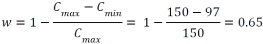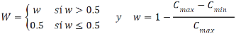 A.1.2 Se calcula el factor de ponderación restando la tasa de cambio escalada a 1. El factor de ponderación (W) debe estar en un rango entre 0.5 y 1. Si w es menor o igual a 0.5 se fija a 0.5: