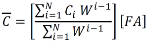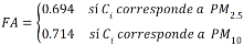A.1.4 Se calcula la concentración promedio móvil ponderada dividiendo la suma anterior entre la suma del factor de ponderación elevado a una potencia igual a las horas que han pasado desde la medición de ese dato y se multiplica por el factor de ajuste que corresponde a las PM2.5: