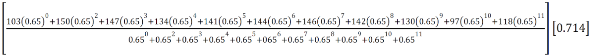 A.2.4 Se calcula la concentración promedio móvil ponderada dividiendo la suma anterior entre la suma del factor de ponderación elevado a una potencia igual a las horas que han pasado desde la medición de ese dato y se multiplica por el factor de ajuste que corresponde a las PM10: