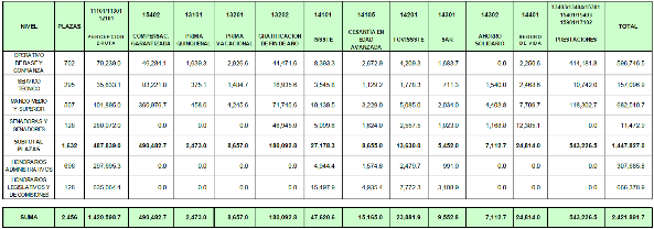 2) NO INCLUYE LAS PLAZAS NI CONTRATOS POR HONORARIOS ADSCRITOS AL CANAL LEGISLATIVO, ASÍ COMO SU PRESUPUESTO AUTORIZADO.
