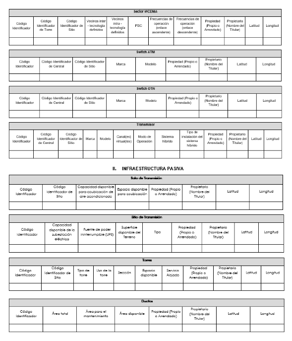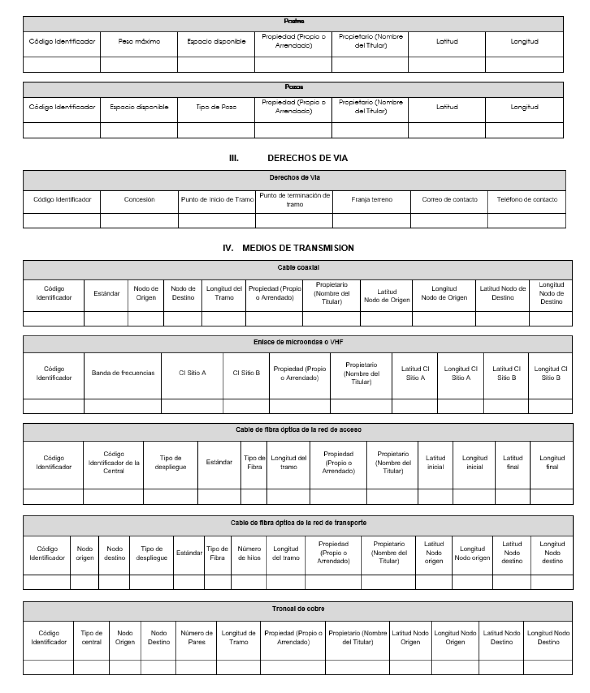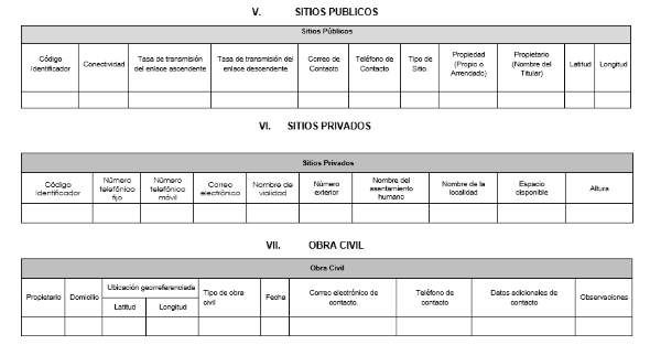 Aunado a lo anterior, resulta indispensable publicar en el DOF de nueva cuenta, el "Anexo IV" y "Anexo V" de los Lineamientos del SNII, derivado que en la publicación a que se refiere el Antecedente Cuarto del presente Acuerdo, no se realizó de manera completa. Asimismo, se ingresa el formato para el reporte de Obra Civil, lo anterior, para darle concordancia con los Lineamientos de despliegue de infraestructura.