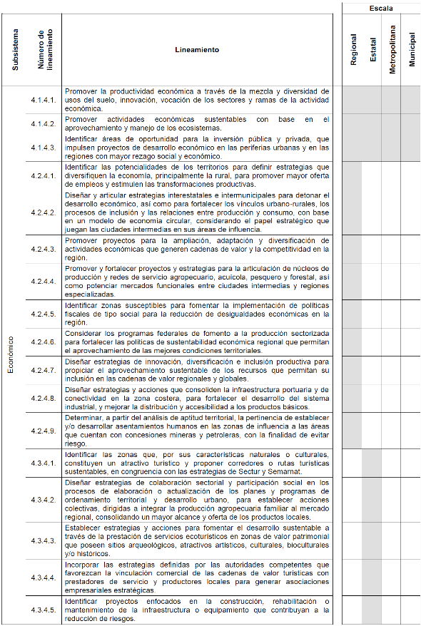 4.5.4.6. Identificar y vincular las estrategias y acciones de los programas de desarrollo económico federales, regionales, estatales, metropolitanos y municipales, con el plan de ordenamiento territorial y desarrollo urbano correspondiente para generar sinergias que ayuden al fortalecimiento integral de la economía en el territorio municipal.