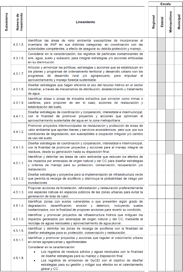 A. Sistematización de lineamientos con referencia a los subsistemas territoriales