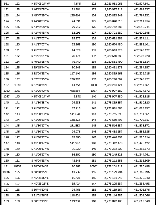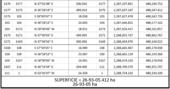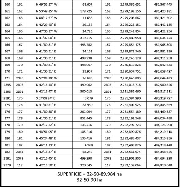 | 9 | 15 | Ejido | Riego | I | 05-93-87 |