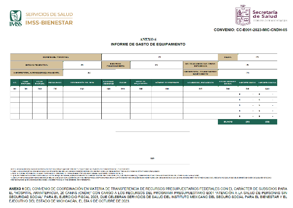 | 42 | CARPETA PORTAEXPEDIENTE. FABRICADA A BASE DE: 1. ALAMBRON DE | MOBILIARIO MÉDICO | 47 | $700.00 | $32,900.00 |