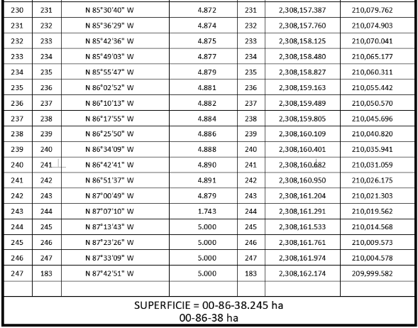 Superficie total a expropiar: 14-59-60 ha 20. Que la Dirección General de Ordenamiento Territorial de la Sedatu, el 26 de octubre de 2023, emitió opinión técnica condicionada número SOTA/DGOT/079/CAM.YUC/FONATUR TM3/002/2023 "respecto del procedimiento de expropiación a favor de Fonatur Tren Maya S.A. DE C.V., por una superficie de 94-20-92 hectáreas", que corresponden a diversos ejidos, entre ellos, "Umán", municipio de Umán, estado de Yucatán, por la superficie de 14-59-60 hectáreas;