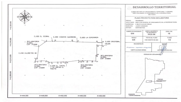 Al margen un sello con el Escudo Nacional, que dice: Estados Unidos Mexicanos.- DESARROLLO TERRITORIAL.- Secretaría de Desarrollo Agrario, Territorial y Urbano.