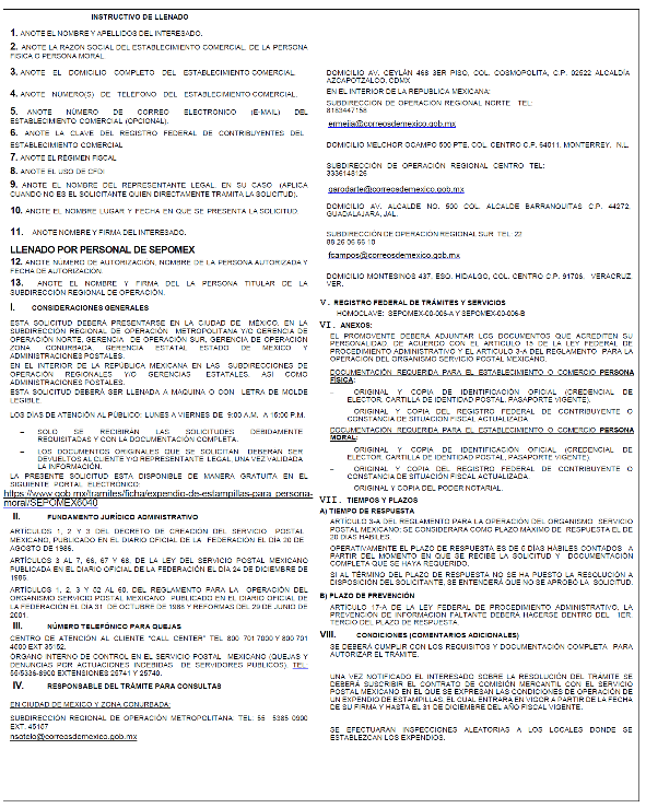 | SEPOMEX-00-006-B | Solicitud de Establecimiento de un Expendio de Estampillas. (Persona Moral). |