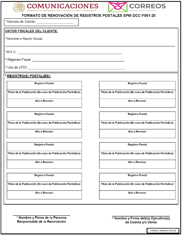 FORMATO DE RENOVACIÓN DE REGISTROS POSTALES SPM-DCC-F001-20