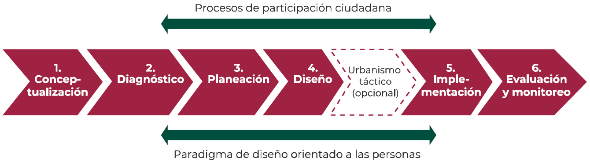 El proceso de diseño y estructuración de las calles parte de nombrar los conceptos con claridad con el propósito de generar el consenso necesario para facilitar una dinámica colaborativa entre personas que diseñan, proyectan, implementan y tomadoras de decisiones, considerando en todo momento las necesidades de desplazamiento de las personas usuarias de la infraestructura vial, con énfasis en la población con discapacidad o movilidad limitada, infancias, mujeres y personas adultas mayores.