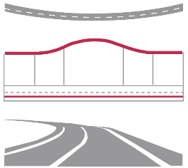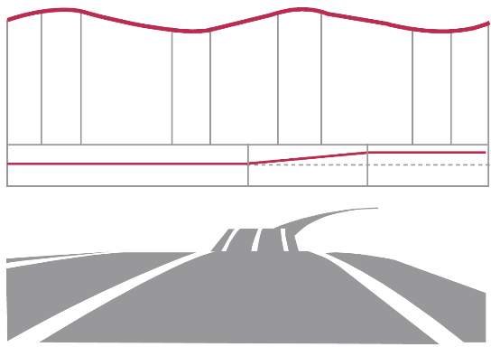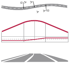 Información de la diferencia de niveles y las pendientes resultantes de las superficies, expresándolas gráficamente como secciones referenciadas a un plano de corte vertical.