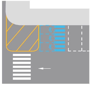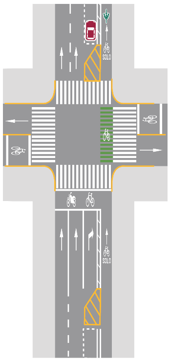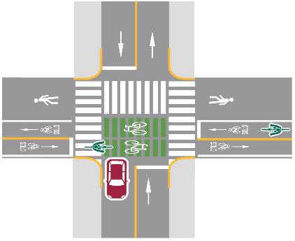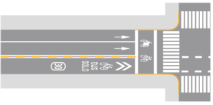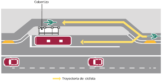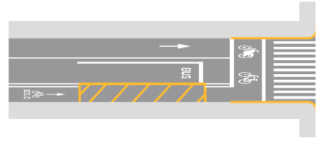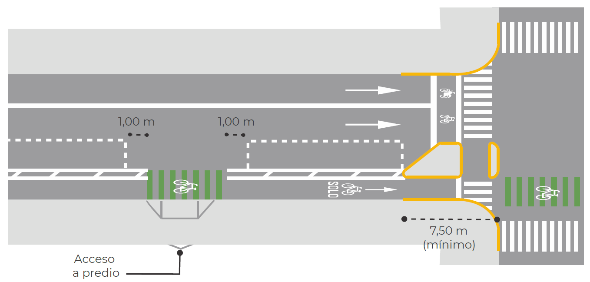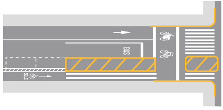 Zona marcada sobre el arroyo vial en intersecciones de calles con semáforos, que permite a las personas conductoras de estos vehículos aguardar la luz verde del semáforo en una posición adelantada, de tal forma que sean visibles a las personas conductoras del resto de los vehículos. También conocida como caja bici-moto.
