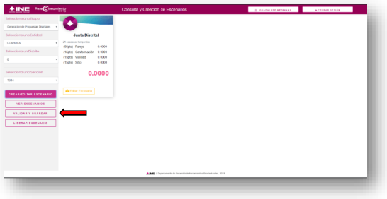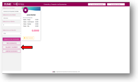 Para que sus escenarios queden registrados, se tendrá que usar la opción "validar y guardar", en el Sistema de Reseccionamiento.