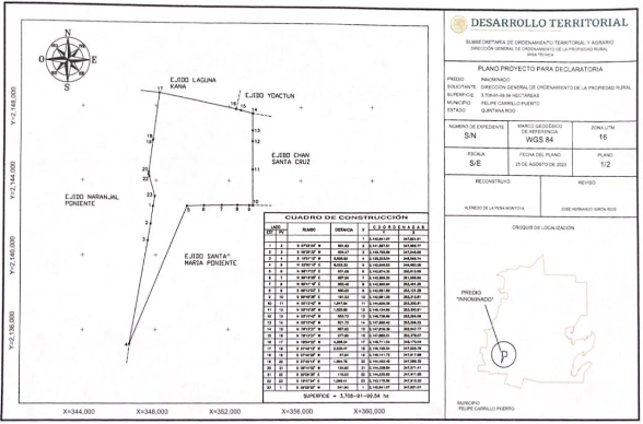 Al margen un sello con el Escudo Nacional, que dice: Estados Unidos Mexicanos.- DESARROLLO TERRITORIAL.- Secretaría de Desarrollo Agrario, Territorial y Urbano.