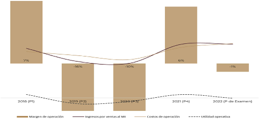 193. Como resultado del comportamiento de los ingresos y de los costos operativos, la Secretaría observó que los resultados operativos disminuyeron 1.14 veces durante el periodo analizado: bajaron 2.8 veces en 2019, aumentaron 0.39 veces en 2020 y 1.89 veces en 2021, y disminuyeron 1.15 veces en el periodo de examen y de revisión de oficio.