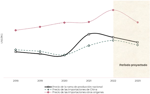 189. El comportamiento de la producción y del empleo de la rama de producción nacional reflejó una disminución de su productividad, expresada como el cociente de estos indicadores, del 15% en el periodo analizado, resultado de caídas de 20% y 6% en 2019 y 2020, respectivamente, y aumentos de 5% en 2021 y 9% en el periodo de examen y de revisión de oficio.