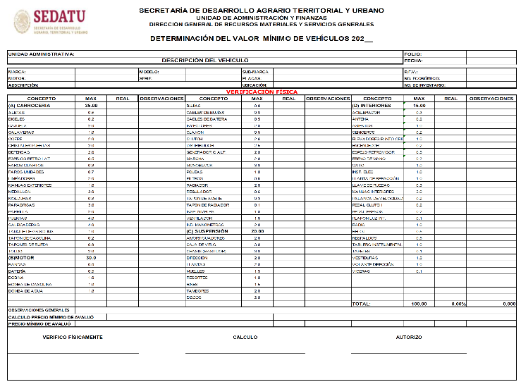 Determinación de valor mínimo de Vehículos. Formato CBM-03.