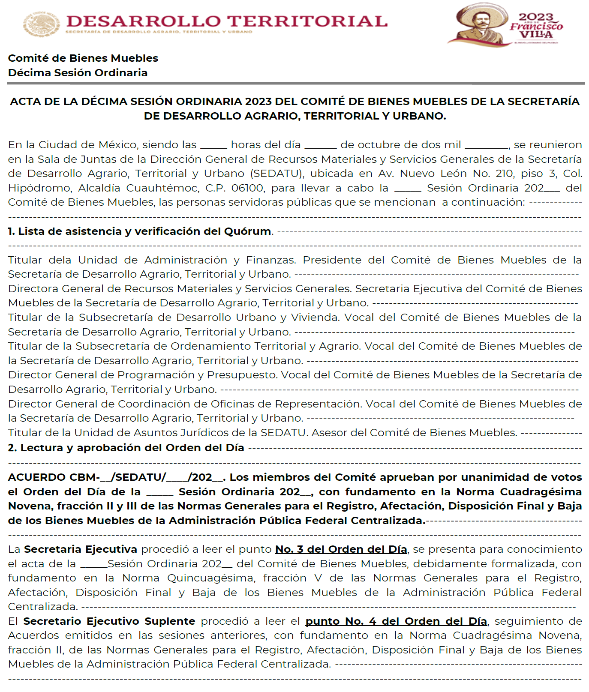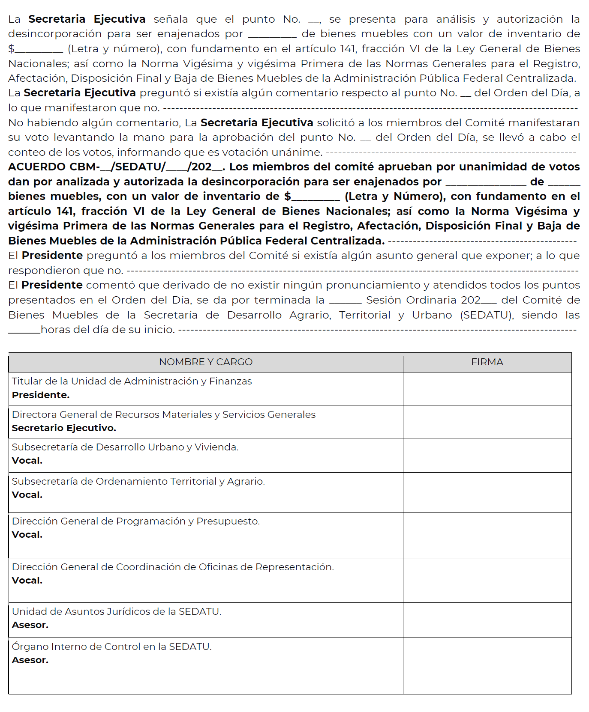 Acta de Sesión del Comité de Bienes Muebles. Formato CBM-06.
