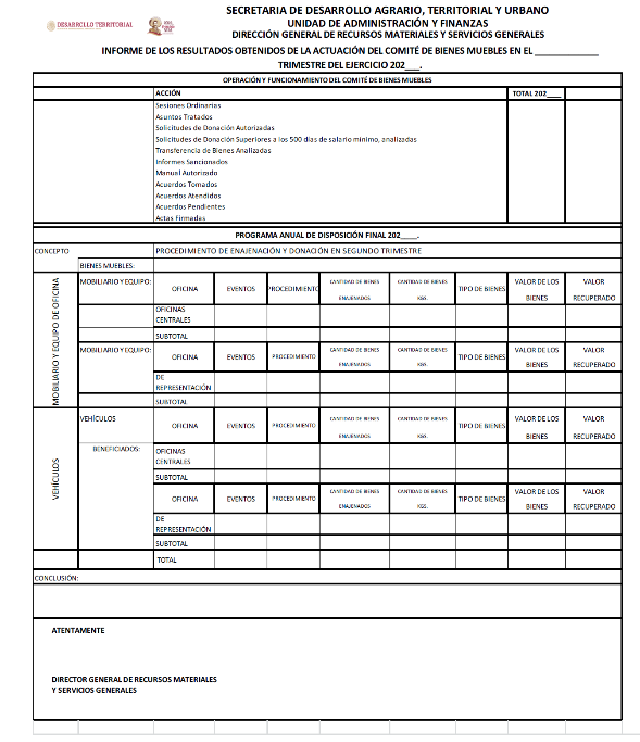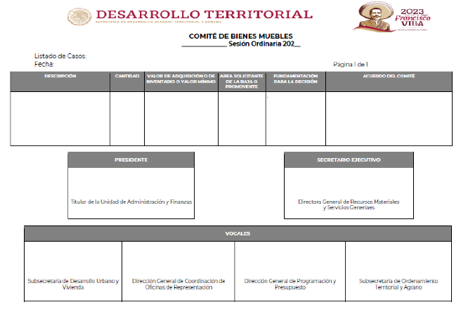 Comité: Comité de Bienes Muebles de la Secretaría de Desarrollo Agrario, Territorial y Urbano.
