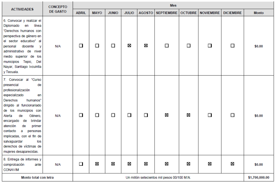 | 8 | Entrega de informes y comprobación ante CONAVIM. |