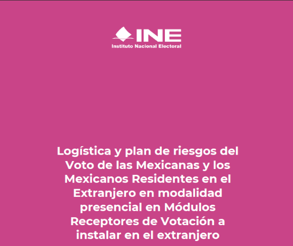 | Logística y plan de riesgos | Logística y plan de riesgos del Voto de las Mexicanas y los Mexicanos Residentes en el Extranjero en modalidad presencial en Módulos Receptores de Votación a instalar en el extranjero para los Procesos Electorales Federal y Locales 2023-2024. |