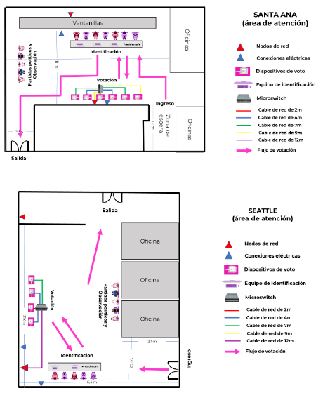 | o La persona enlace del INE solicitará el apoyo del enlace de la sede consular para que se revise la causa de la falla en la infraestructura de telecomunicaciones, con el propósito de reestablecer el servicio. o Mientras el servicio de internet se reestablece, se llevarán a cabo las acciones para conectar el o los dispositivos de votación a la red o dispositivo alterno que, en su caso, se dispondrá para ello (router, módem, etc.). o En caso de que no se logre la conexión, se consultará con la persona presidenta de MRV si se declara suspensión de la votación hasta que se reestablezca el servicio. o Se notificará al Grupo de Seguimiento. |