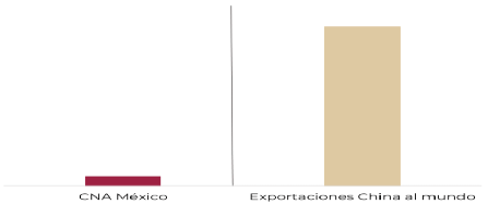 167. Con base en dicha información, la Secretaría observó que las exportaciones de China al mundo representaron más de 17 veces el CNA y más de 4 veces la producción nacional de 2022, como se muestra en la siguiente gráfica.