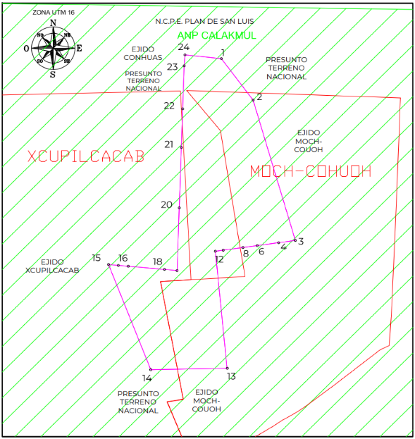 AL SUR: Con Presunto Terreno Nacional y Ejido Moch-Couch