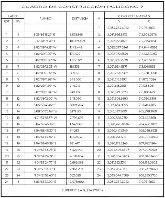 Es por ello, que la Secretaría de Medio Ambiente y Recursos Naturales por conducto de la Comisión Nacional de Áreas Naturales Protegidas, mediante oficio No. DGOR/0501/2023 del 28 de abril de 2023, solicitó a la SEDATU la puesta a disposición del "Polígono 7", presunto terreno nacional localizado al interior de la Reserva de la Biosfera de Calakmul, autorizando mediante oficio No.II210.DGOPR.DTN.08301.2024 del 26 de abril de 2024, los trabajos de medición y deslinde del predio citado, con una superficie aproximada de 12,254.2761 hectáreas, ubicado en el municipio de Calakmul, estado de Campeche.