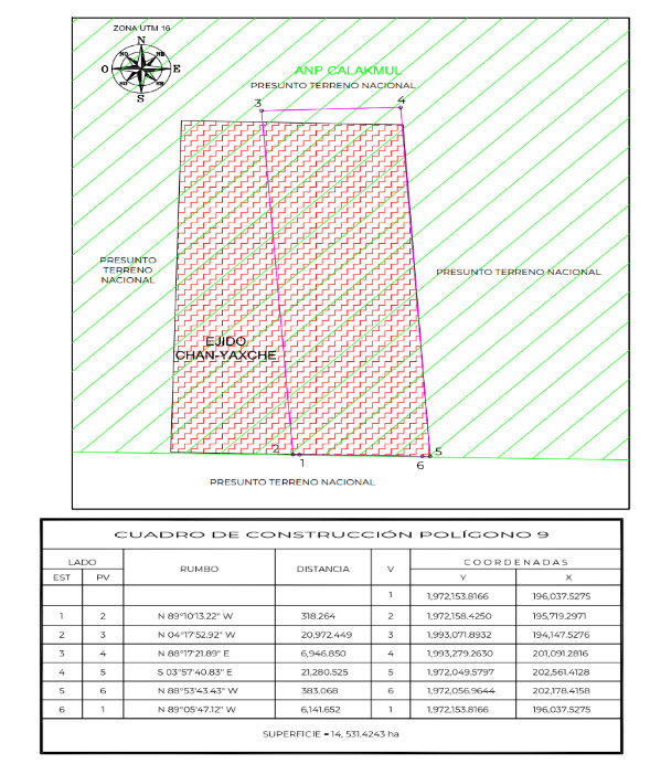 AVISO DE MEDICIÓN Y DESLINDE DEL PREDIO DENOMINADO "POLÍGONO 9", EL CUAL ESTÁ INMERSO EN LA RESERVA DE LA BIOSFERA DE CALAKMUL, CON UNA SUPERFICIE APROXIMADA DE 14,531.4243 HECTÁREAS, UBICADO EN EL MUNICIPIO DE CALAKMUL, ESTADO DE CAMPECHE.