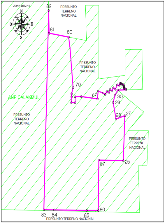 Es por ello, que la Secretaría de Medio Ambiente y Recursos Naturales por conducto de la Comisión Nacional de Áreas Naturales Protegidas, mediante oficio No. DGOR/0501/2023 del 28 de abril de 2023, solicitó a la SEDATU la puesta a disposición del "Polígono 10", presunto terreno nacional localizado al interior de la Reserva de la Biosfera de Calakmul, autorizando mediante oficio No.II210.DGOPR.DTN.08301.2024 del 26 de abril de 2024, los trabajos de medición y deslinde del predio citado, con una superficie aproximada de 20,969.820541 hectáreas, ubicado en el municipio de Calakmul, estado de Campeche.