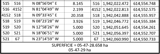 | 3 | 26 | Ejidataria | Temporal | I | 00-49-00 |