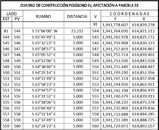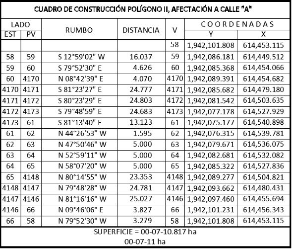 18. Que el comisionado técnico del RAN y el comisionado agrario de la Sedatu rindieron el "informe de comisión de Trabajos Técnicos e Informativos de Expropiación", de 31 de agosto de 2023, en el que señalan que la superficie real a expropiar al ejido "Guadalupe (División de Cháncala Zapote)", municipio de Palenque, estado de Chiapas es de 07-60-72 ha, de las cuales 05-38-85 ha son de uso común y 02-21-87 ha son de uso parcelado, que se describen en los siguientes planos y cuadros de construcción: