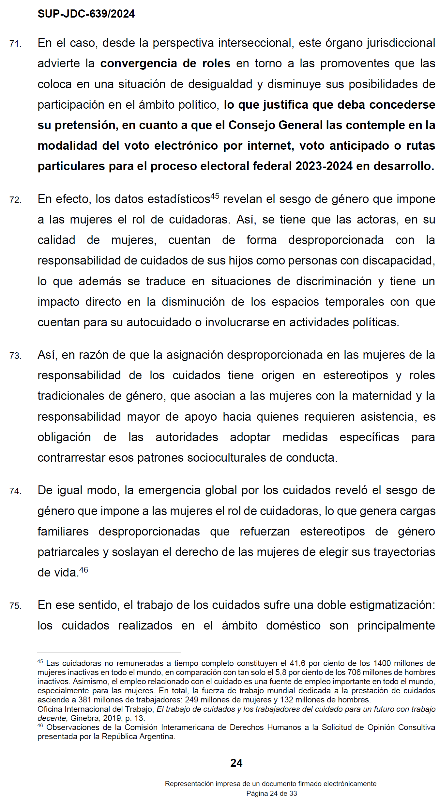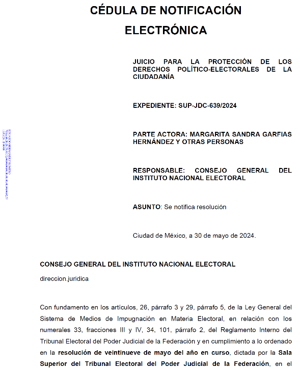 ACUERDO DEL CONSEJO GENERAL POR EL QUE SE INSTRUYE A LAS UNIDADES RESPONSABLES PARA IMPLEMENTAR LAS ACTIVIDADES DEL VOTO ANTICIPADO EN TERRITORIO NACIONAL A FIN DE DAR CUMPLIMIENTO A LA SENTENCIA DICTADA POR LA SALA SUPERIOR DEL TRIBUNAL ELECTORAL DEL PODER JUDICIAL DE LA FEDERACIÓN, EN EL EXPEDIENTE SUP-JDC-639/2024, PARA GARANTIZAR EL DERECHO AL VOTO A LA C. MARGARITA SANDRA GARFIAS HERNÁNDEZ Y OTRAS PERSONAS