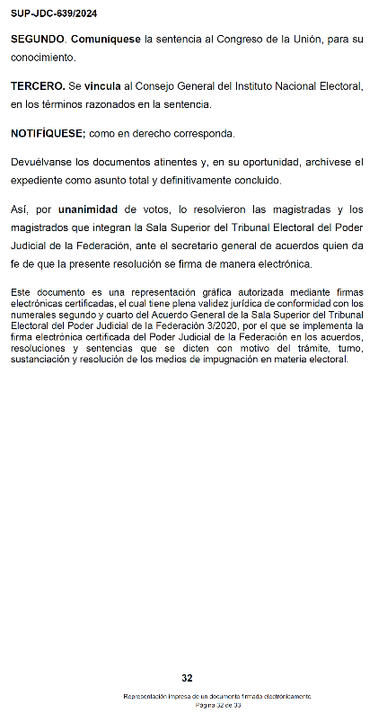 34. En los Efectos de la sentencia dictada en el Expediente SUP-JDC-639/2024, se revocó el Acuerdo INE/CG269/2024, la Sala Superior del TEPJF señaló que:
