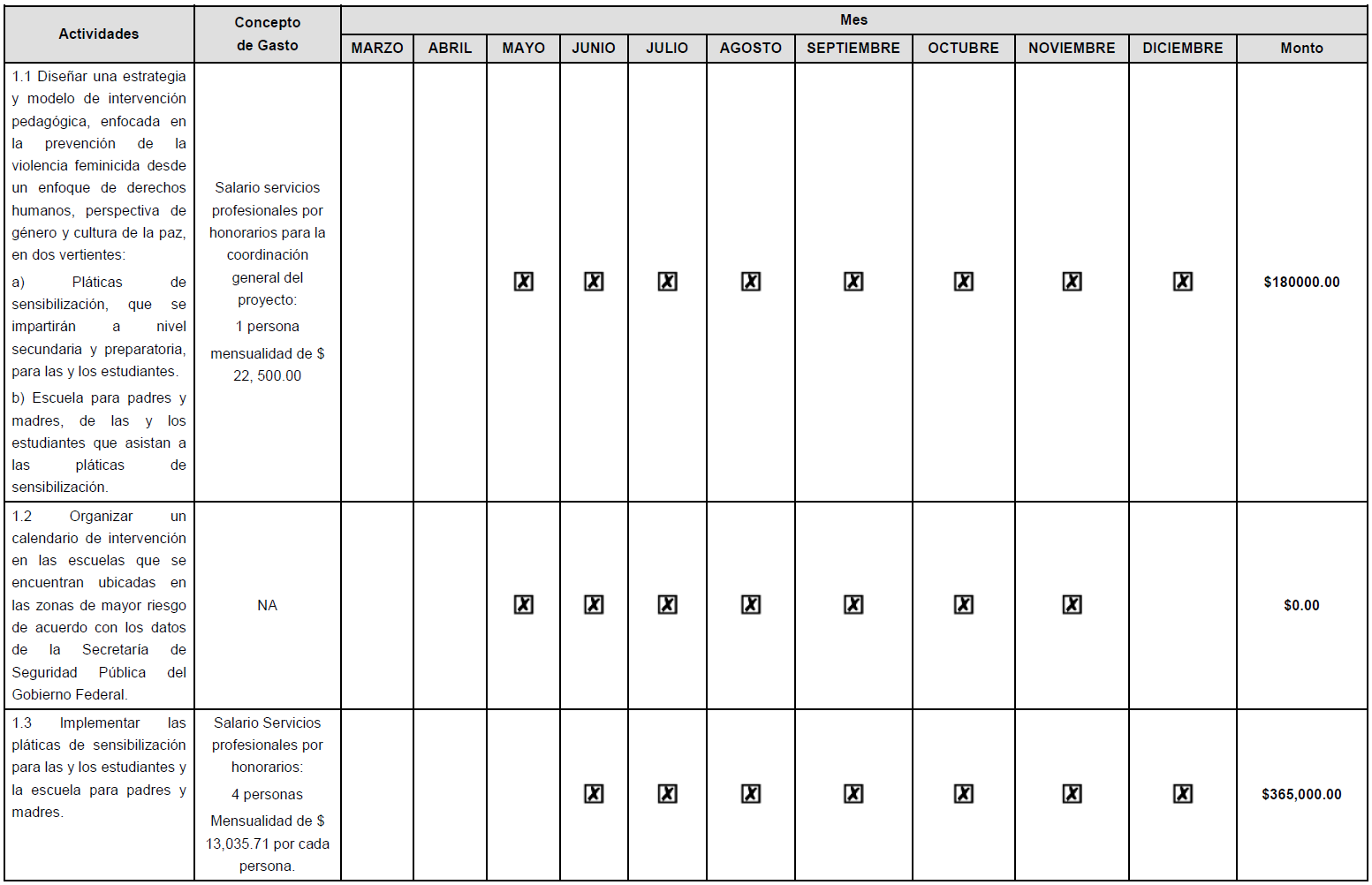 | 2 | Asignar espacios físicos e insumos de trabajo adecuados para que las y los prestadores de servicios por honorarios asimilables a salarios puedan realizar las actividades que les correspondan para la elaboración de los Informes de Análisis de Contexto. |