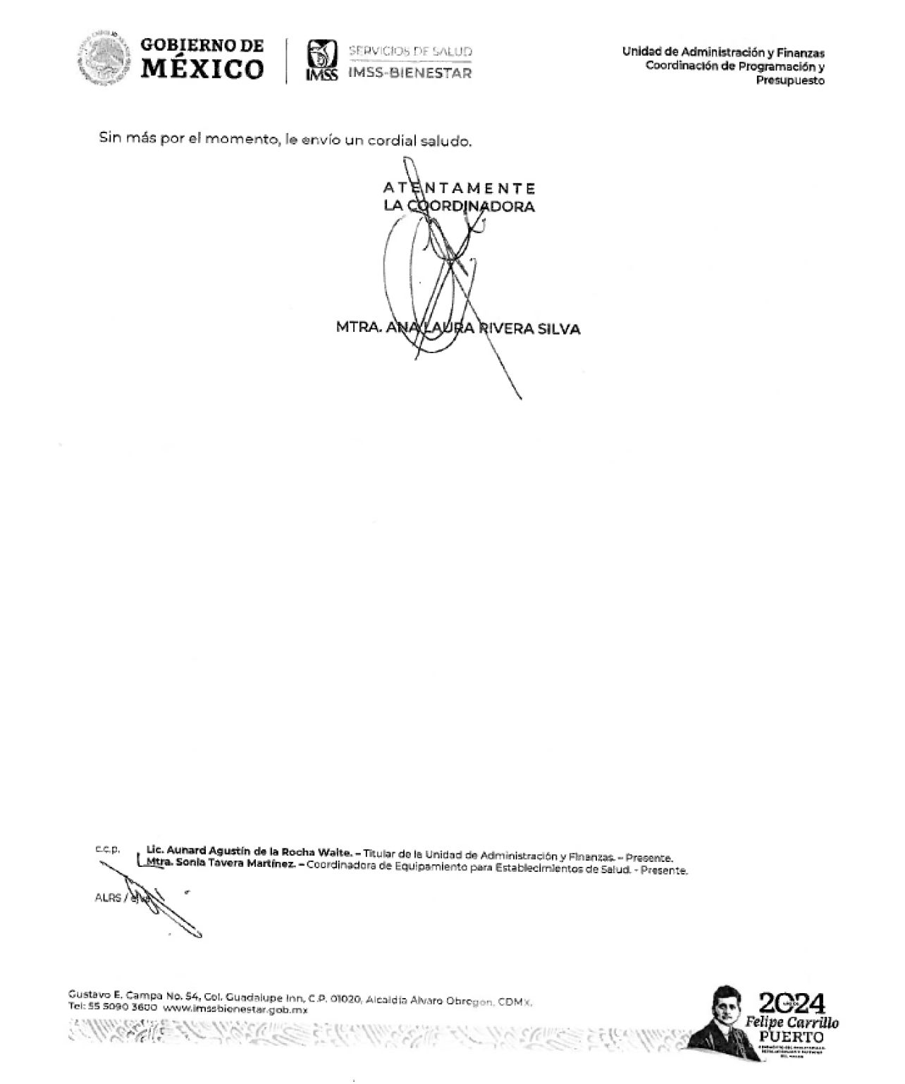 CONVENIO DE COORDINACIÓN EN MATERIA DE TRANSFERENCIA DE RECURSOS PRESUPUESTARIOS FEDERALES CON EL CARÁCTER DE SUBSIDIOS PARA APOYAR LA ADQUISICIÓN DE EQUIPAMIENTO PARA EL "FORTALECIMIENTO PARA BRINDAR EL SERVICIO DE BRAQUITERAPIA DE ALTA TASA DE DOSIS EN LA UNEME DE ONCOLOGÍA", CON CARGO A LOS RECURSOS DEL PROGRAMA PRESUPUESTARIO E001 "ATENCIÓN A LA SALUD DE PERSONAS SIN SEGURIDAD SOCIAL", PARA EL EJERCICIO FISCAL 2024, EN ADELANTE "EL PROGRAMA", QUE CELEBRAN POR UNA PARTE, SERVICIOS DE SALUD DEL INSTITUTO MEXICANO DEL SEGURO SOCIAL PARA EL BIENESTAR, AL QUE EN LO SUCESIVO SE LE DENOMINARÁ EL "IMSS-BIENESTAR", REPRESENTADO POR EL DR. ALEJANDRO ANTONIO CALDERÓN ALIPI, EN SU CARÁCTER DE DIRECTOR GENERAL, ASISTIDO POR EL DR. VÍCTOR HUGO BORJA ABURTO, TITULAR DE LA UNIDAD DE ATENCIÓN A LA SALUD, EL ARQ. CARLOS SÁNCHEZ MENESES, TITULAR DE LA UNIDAD DE INFRAESTRUCTURA Y POR EL LIC. AUNARD AGUSTÍN DE LA ROCHA WAITE, TITULAR DE LA UNIDAD DE ADMINISTRACIÓN Y FINANZAS, Y POR LA OTRA PARTE, EL EJECUTIVO DEL ESTADO DE ZACATECAS, AL QUE EN LO SUCESIVO SE LE DENOMINARÁ "EL GOBIERNO DE LA ENTIDAD", REPRESENTADO POR EL DR. RICARDO OLIVARES SECRETARIO DE FINANZAS DEL ESTADO DE ZACATECAS Y EL DR. USWALDO PINEDO BARRIOS, SECRETARIO DE SALUD Y DIRECTOR GENERAL DE LOS SERVICIOS DE SALUD DE ZACATECAS, A QUIENES DE MANERA CONJUNTA SE LES DENOMINARÁ COMO "LAS PARTES", AL TENOR DE LOS ANTECEDENTES, DECLARACIONES Y CLÁUSULAS SIGUIENTES: