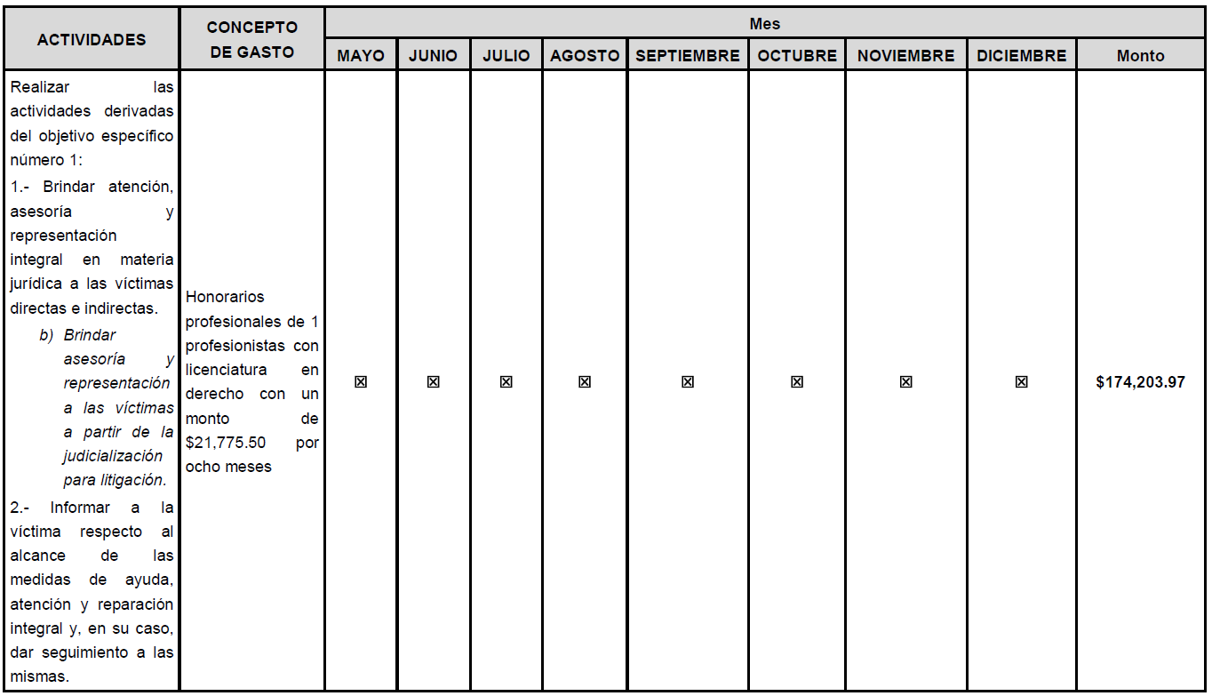 CEPCONAVIM/2SO/177/10062024. El Comité de Evaluación de Proyectos en términos de los numerales Vigésimo segundo, Vigésimo cuarto, Vigésimo Sexto incisos e) y h) y Trigésimo Octavo de los Lineamientos aplicables, por unanimidad de votos aprueba la solicitud de la modificación del Anexo Técnico del Proyecto AVGM/COL/AC01/SGG/052, para iniciar actividades a partir del 01 de junio del 2024, así como la contratación de un Profesionista con Licenciatura en Derecho del 01 de junio al 31 de diciembre de 2024 y uno en Psicóloga del 01 de julio al 31 de diciembre de 2024.