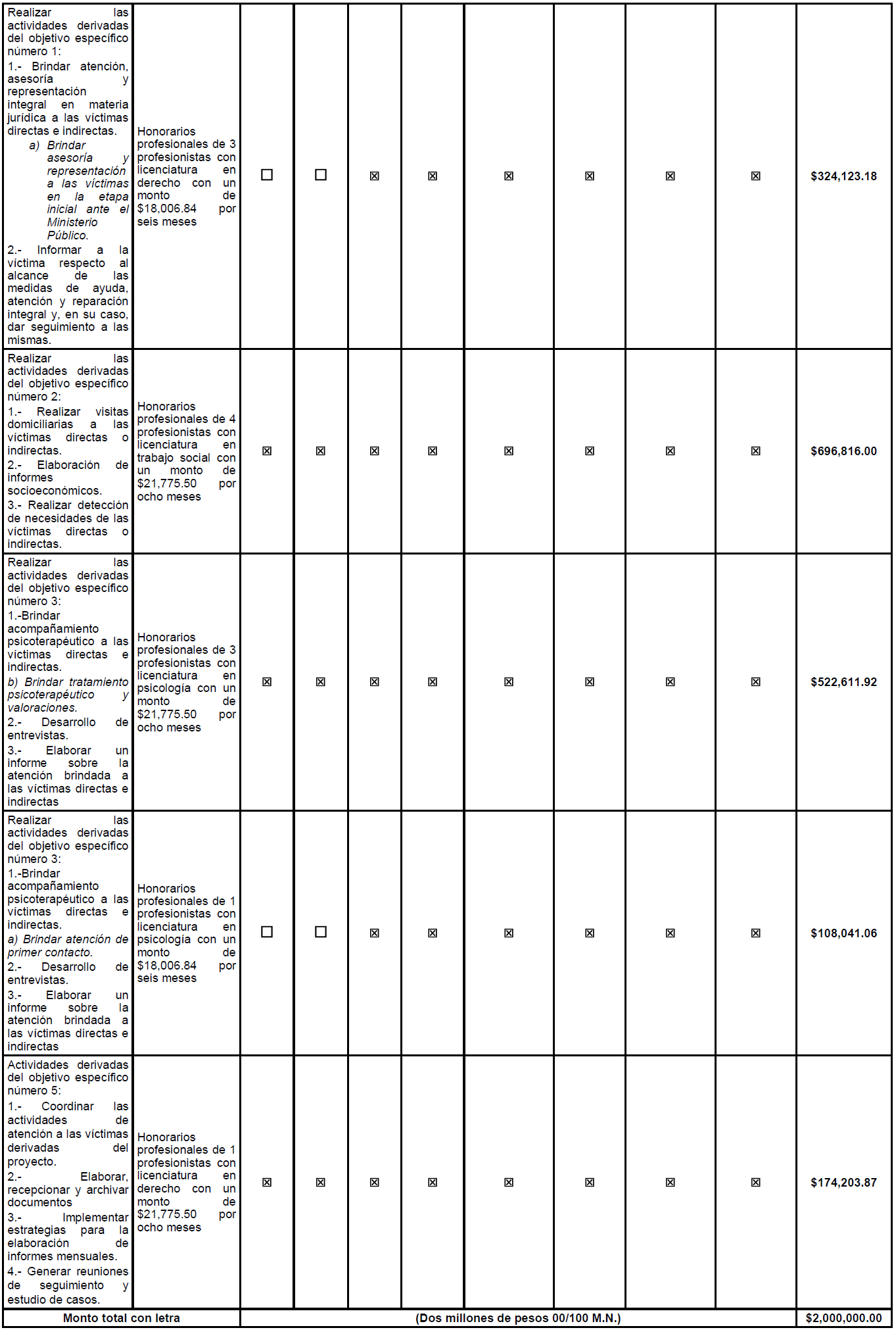 | Otras Asesorías para la operación de programas | 331 | 13 | $2,000,000.00 | 15 | $2,000,000.00 | 2 | $2,000,000.00 |
