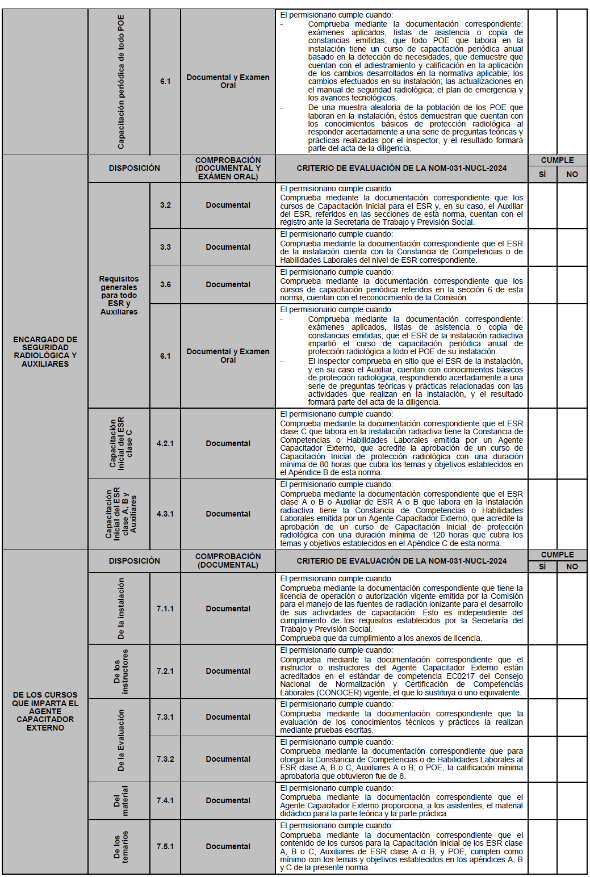 | Identificar los métodos utilizados para el control de la contaminación radiactiva, así como los métodos para reducir la exposición interna y externa. Conocer el manejo y uso correcto de los accesorios y dispositivos de seguridad radiológica, con el grado que requieran sus funciones y responsabilidades. | Riesgos de irradiación. Control de la exposición: Factores básicos de protección radiológica: Tiempo, distancia y blindaje. | Describir y aplicar los conceptos de tiempo, distancia y blindaje para reducir la exposición a la radiación ionizante en sus actividades laborales. |