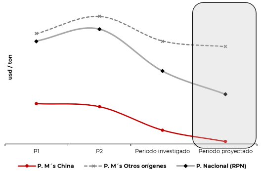 g. El bajo nivel de precios al que concurrirían las importaciones investigadas, de acuerdo con el análisis y los resultados de las proyecciones, constituye un factor determinante que incentivará su incremento y participación en el mercado nacional. De continuar el ingreso de dichas importaciones en tales niveles de precios, la Solicitante tendría que reducir sus precios 18% en el periodo proyectado.