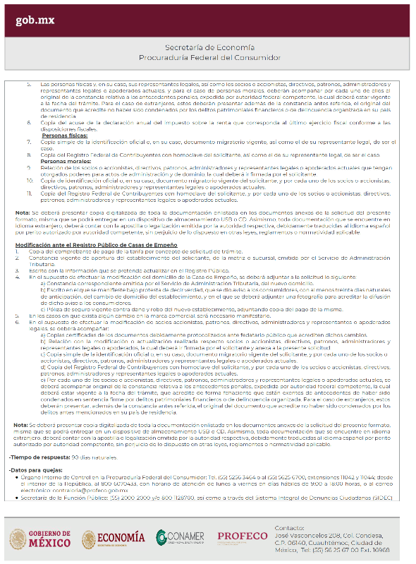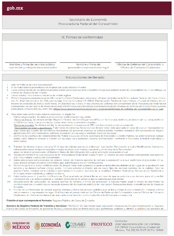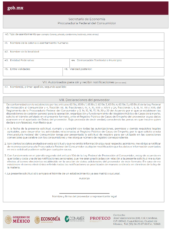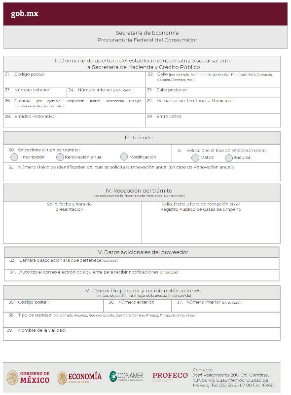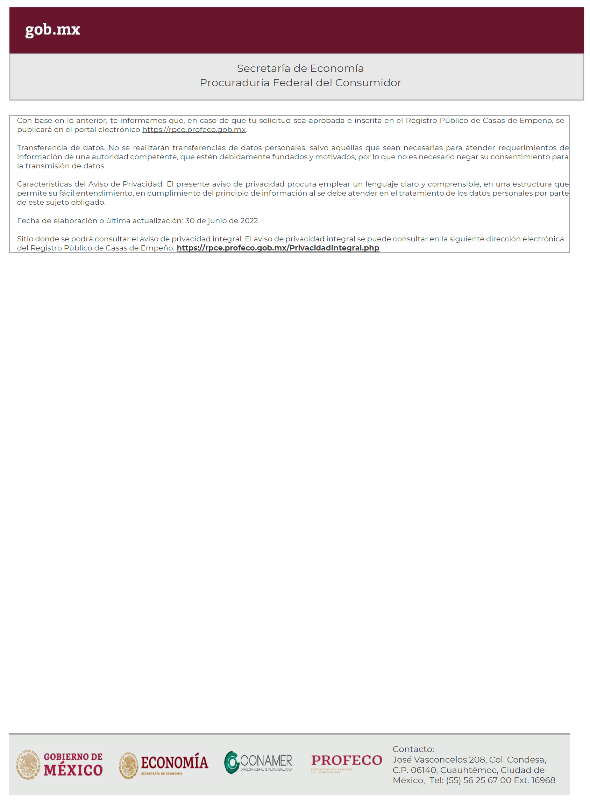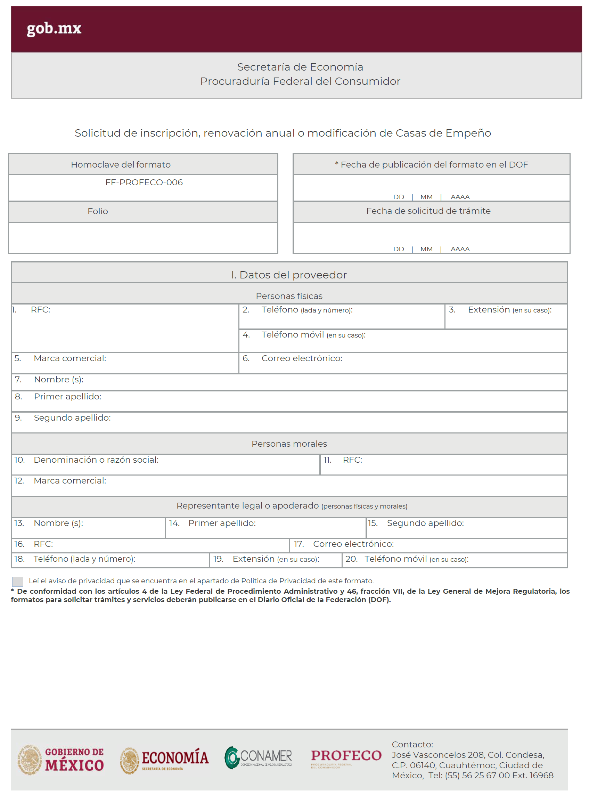8. Solicitud de inscripción, renovación anual o modificación de Casas de Empeño (FF-PROFECO-006).