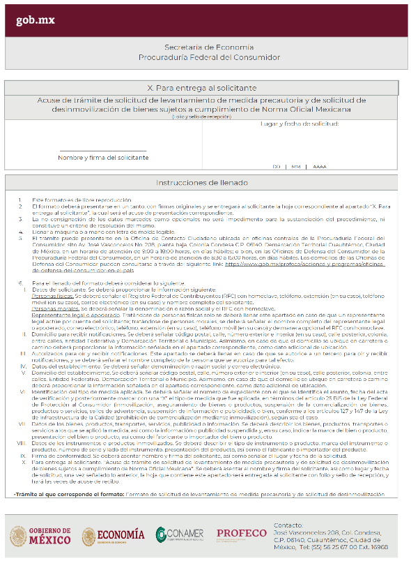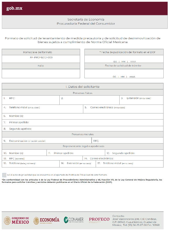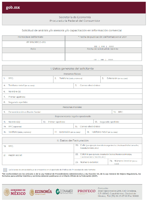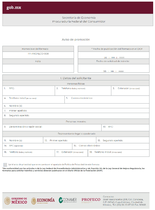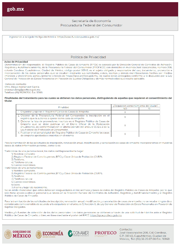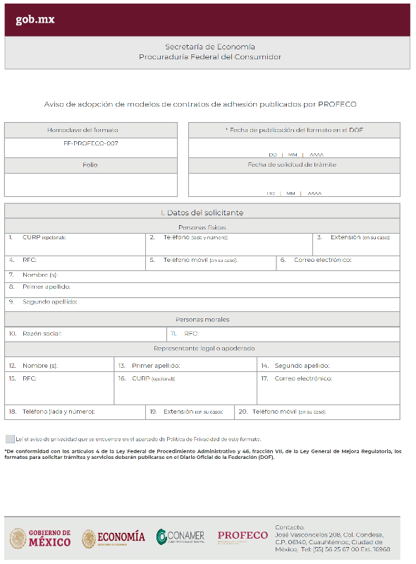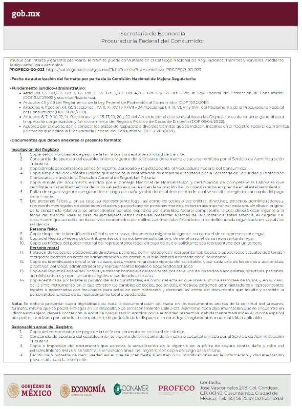 8. Solicitud de inscripción, renovación anual o modificación de Casas de Empeño (FF-PROFECO-006).