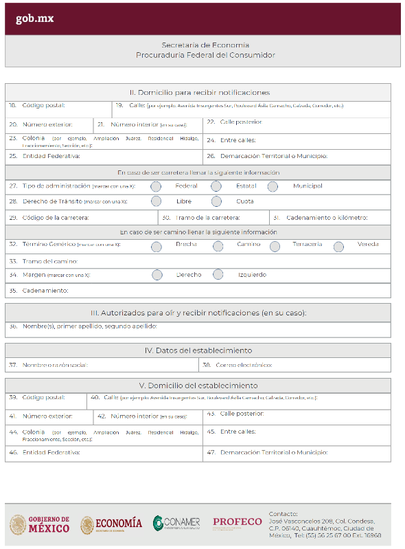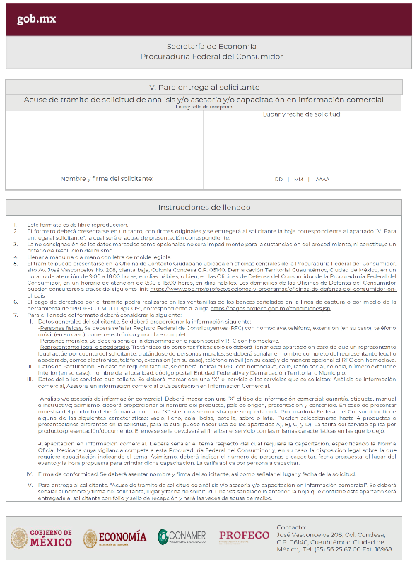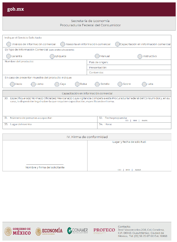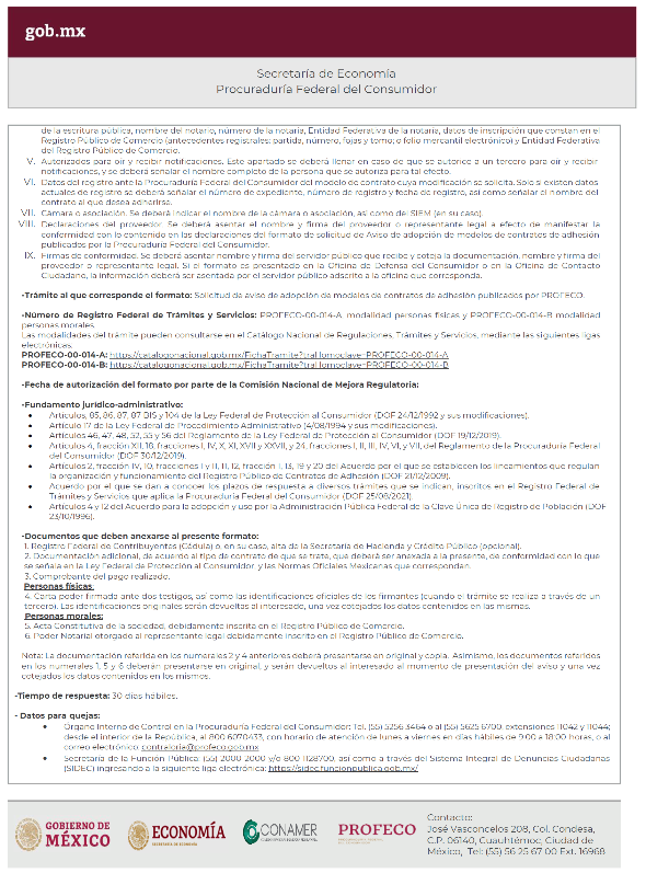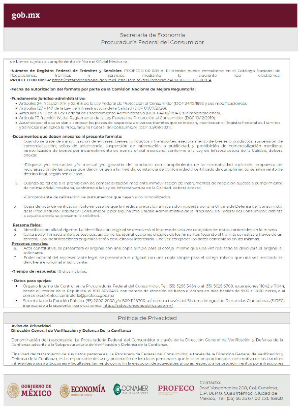 Que a fin de brindar certeza jurídica a los particulares respecto de la presentación de trámites competencia de la Secretaría de Economía, es necesario modificar los formatos a cargo de la Dirección General de Industrias Ligeras, así como de la Profeco, por lo que se expide el siguiente: