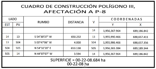 IV. Que, de diversos documentos contenidos en el expediente de expropiación número DGOPR-DE/SOE-27TB/0046 FONATUR TREN MAYA, S.A. de C.V/2023, se advierte que la superficie que se solicitó expropiar al ejido "El Bari" fue de 00-64-56.39 ha; sin embargo, una vez realizados los trabajos técnicos, resultó que la superficie real es de 00-64-56 ha de uso parcelado, como consta en el informe de comisión de Trabajos Técnicos e Informativos de Expropiación, ya referido, motivo por el cual la superficie a expropiar al ejido "El Bari", municipio de Balancán, estado de Tabasco debe ser 00-64-56 ha;